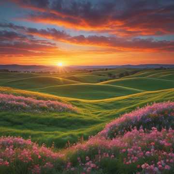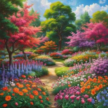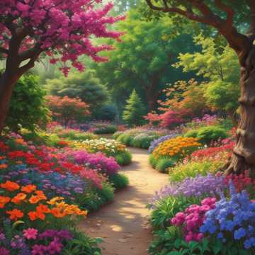 Baby birds learning to fly and flowers blooming, trees gently swaying in a soft breeze