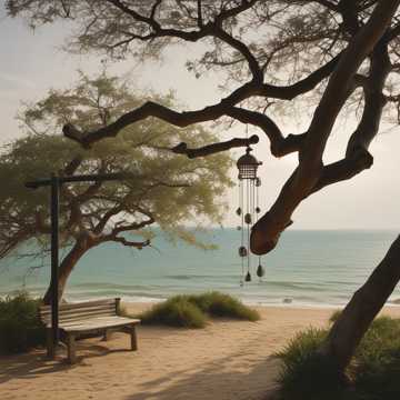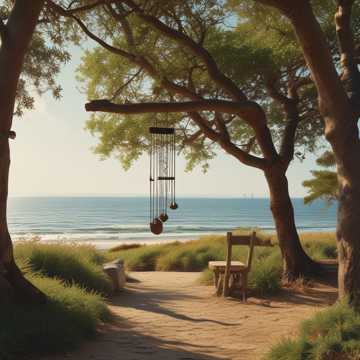 Bells and windchimes, cool breeze by the sea, sunny and warm, relaxing under a tree