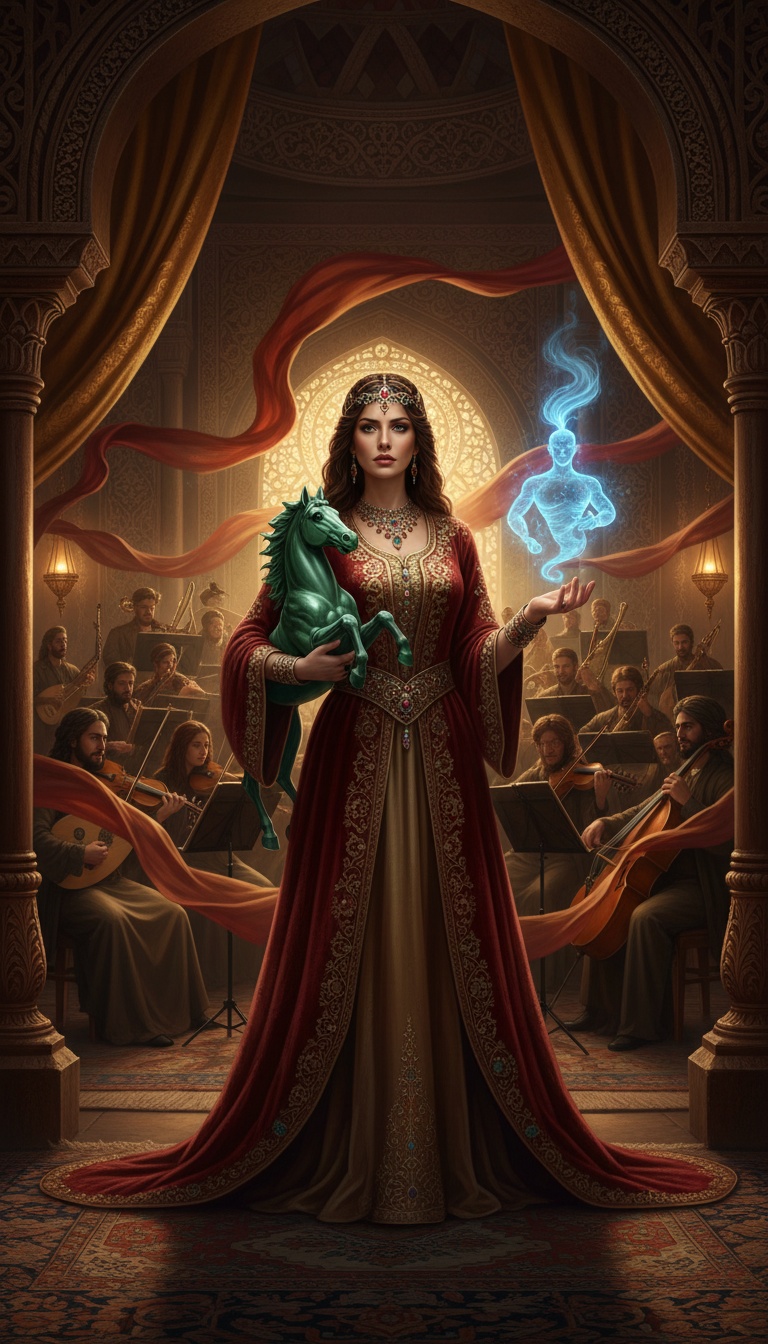 Dramatic Middle Eastern-inflected pop with modern drums and dark orchestral swells, Verses stay sparse with oud and low strings under sly, storyteller vocals; chorus hits big with stomping percussion, distorted bass, and call-and-response chants, Bridge leans into whispered ad-libs, then everything drops for a final, soaring hook, emotional