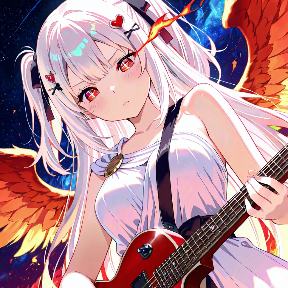 Mix between hyperpop and japanese rock / artcore, Fast punchy drums, layered synths, and electric guitar, Polished and intense sounds, Electronic