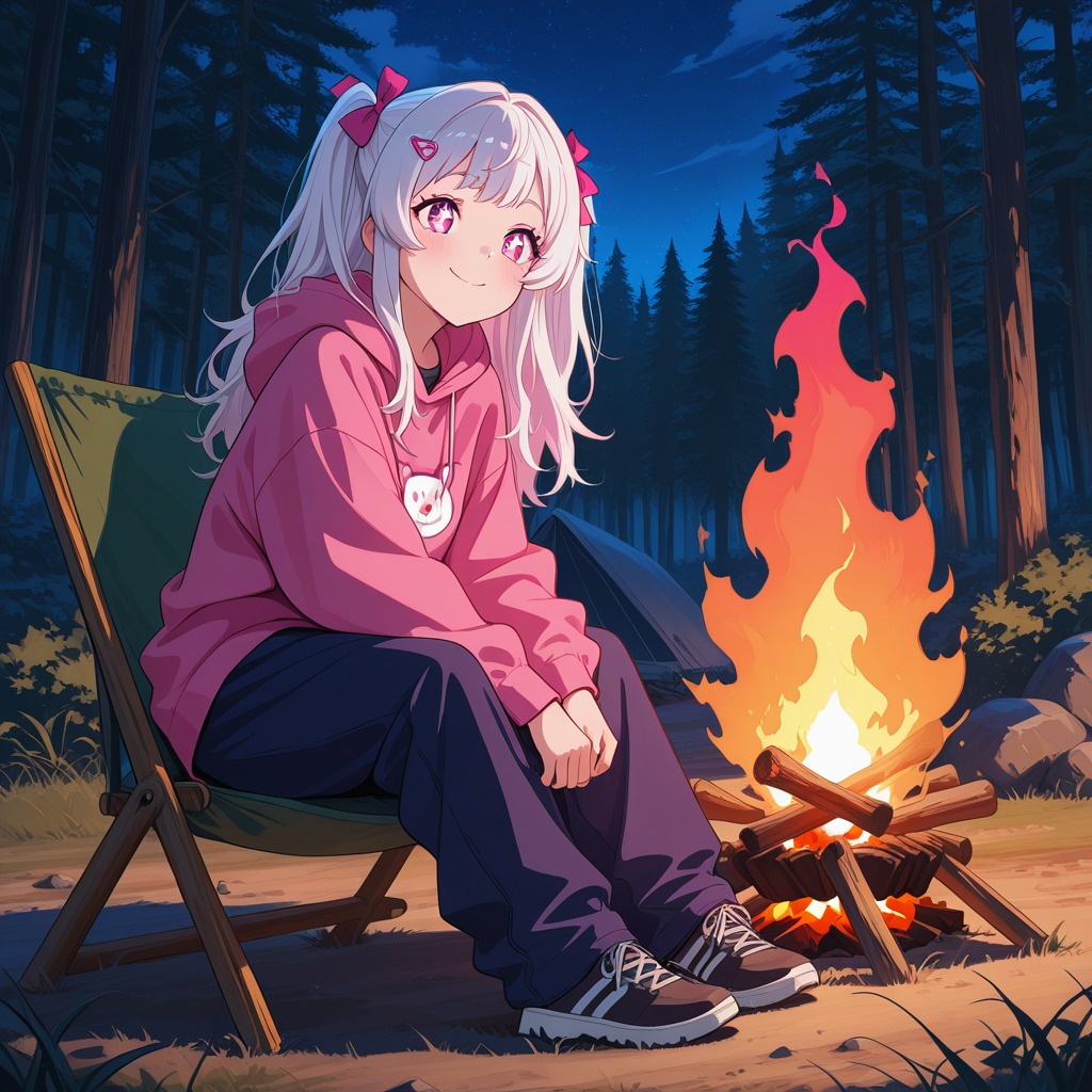 mix of traditional study lo-fi songs and Japanese pop anime opening, slow tempo, vinyl, Botanica, nature ambience, fire crackling, natural sounds like birds, leaves rustling, video game ost, ‑high BPM, ‑fast bpm