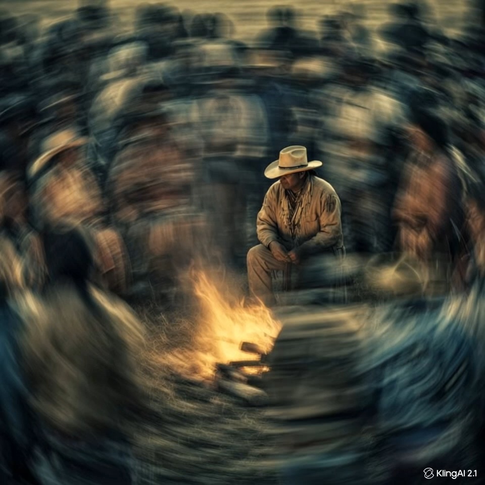 A dark, psychedelic, chillgaze track opens with swirling, effects-laden guitar riffs and slow, thunderous drums, The stark, gritty male vocals drift in, delivering intense emotion, while shamanic vocal layers echo in the background, Heavy bass anchors the track as virtuosic guitar solos twist unpredictably, Phil Specter production