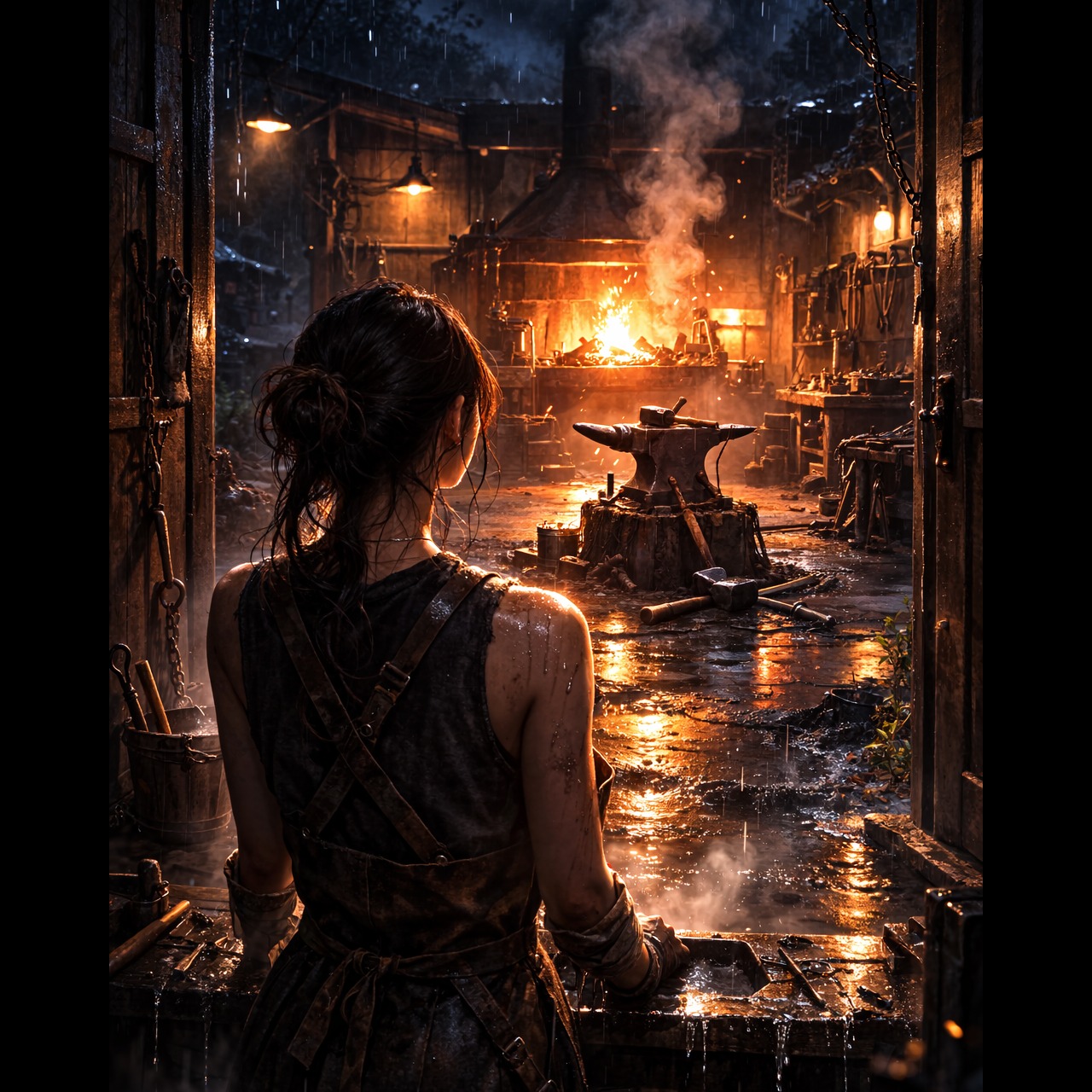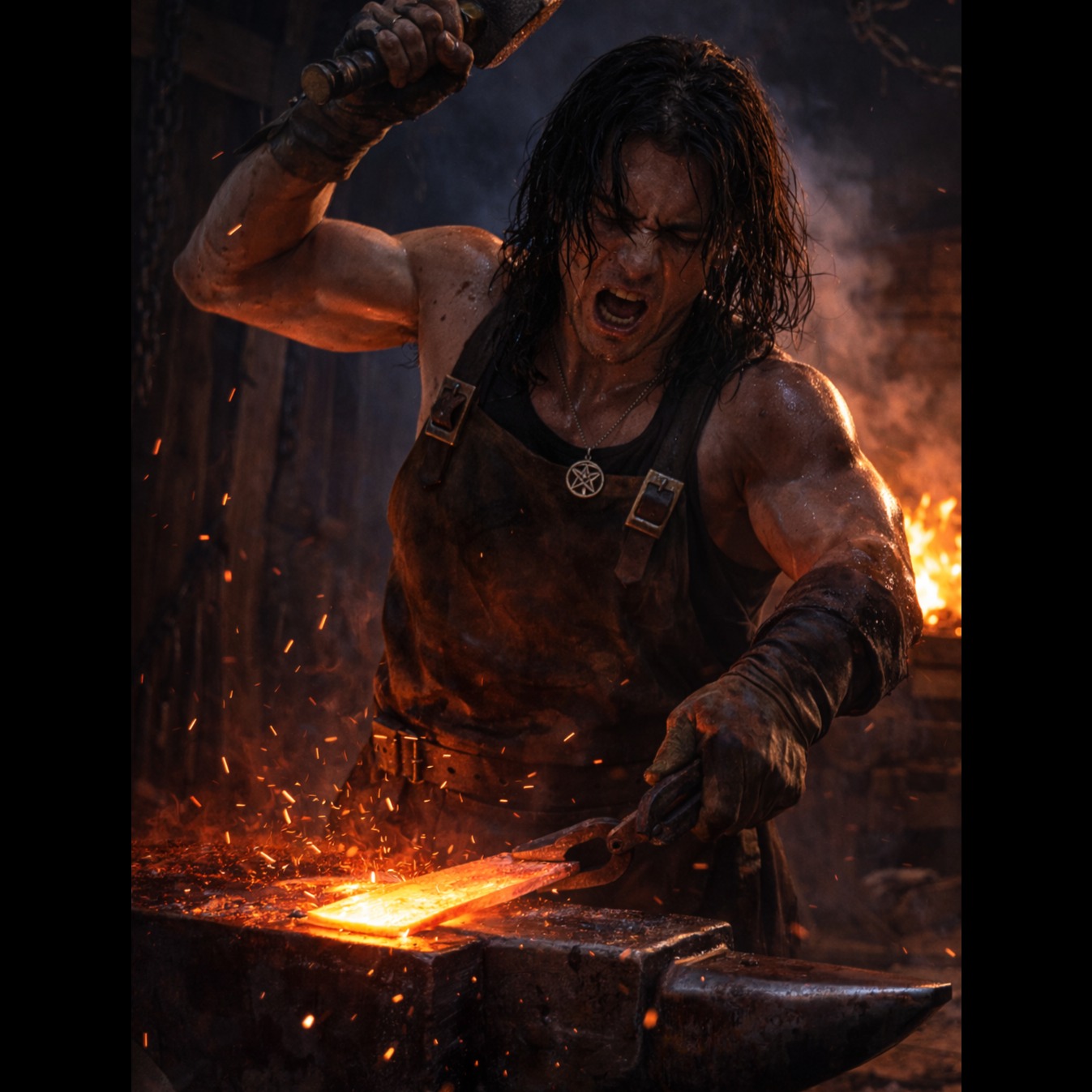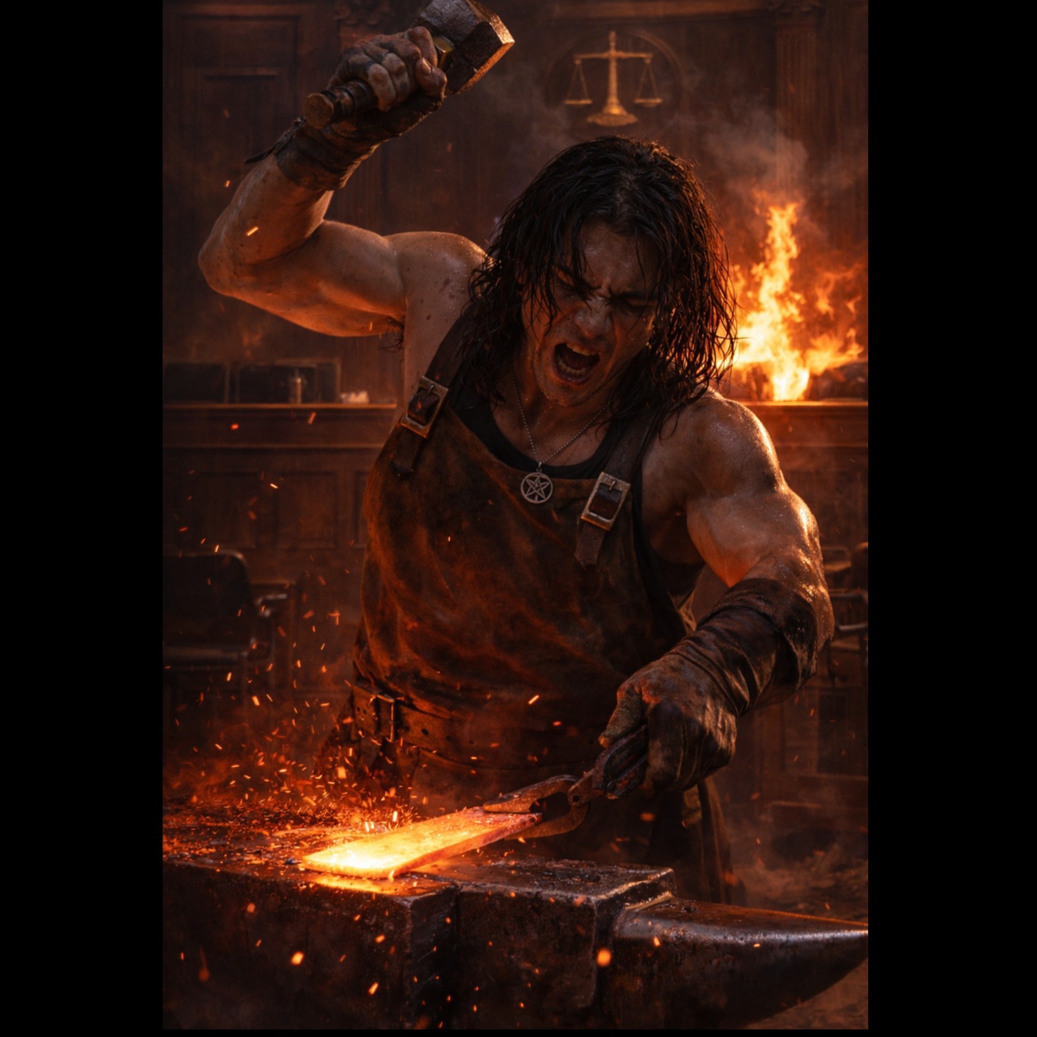Dark cinematic spoken-word narration, documentary style, slow and calm male voice narration (low baritone), minimal atmospheric metal ambience, deep drone pads, distant metallic resonance, subtle forge fire crackling, slow industrial percussion echoes, cinematic tension build, no singing, no melody-driven vocals, only spoken narration with dramatic pauses, Mood serious, reflective, historical record tone, Background sound like a quiet forge workshop at night, distant hammer hits and metal resonance, Tempo very slow (60 BPM feeling), Production wide and atmospheric, deep low end, minimal instruments, Voice clear, close and intimate, as if telling a real story in a dark room, Genre: cinematic ambient / spoken narrative / industrial metal atmosphere