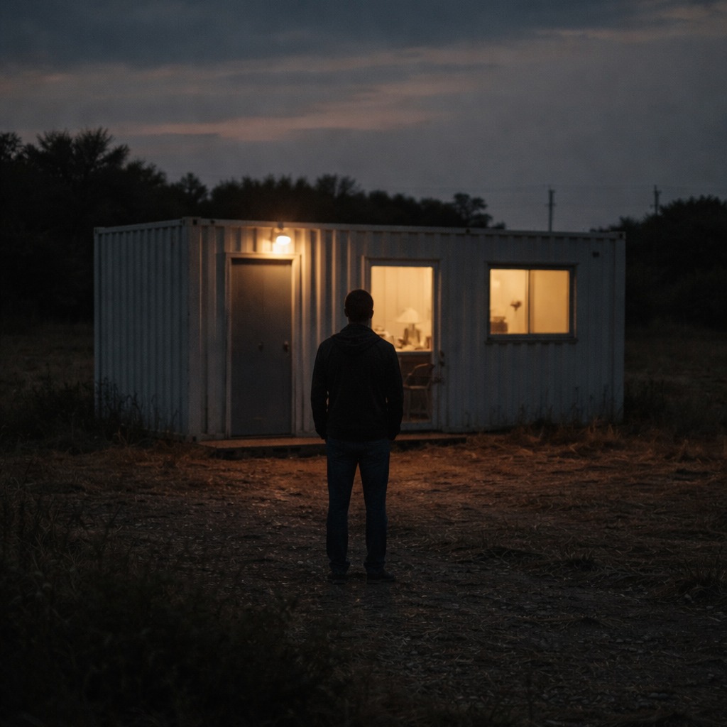 Spoken word documentary soundtrack, slow tempo 70 BPM, dark cinematic atmosphere, Minimal instrumental arrangement with deep ambient drones, metallic container-like percussion, distant pads, slow heartbeat kick drum, sparse electric guitar textures, Mood serious, reflective, historical, Male low voice spoken narration, calm and steady tone, documentary storytelling style, clear pronunciation, no singing, spoken word delivery, Music minimal underneath narration, gradually building subtle tension