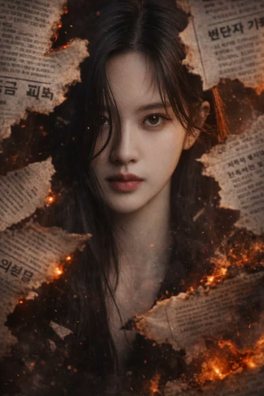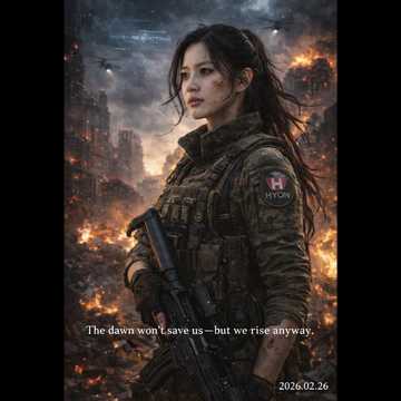 A powerful Korean rock ballad, tempo 110 BPM, female vocalist with soaring and emotional high notes (Lee Young Hyun or Sohyang style), Instrumentation includes heavy electric guitar, deep bass, dynamic drums, and dramatic orchestral strings, The song begins dark and heavy, then explodes into a hopeful and uplifting chorus, symbolizing resilience, struggle, and rebirth from despair