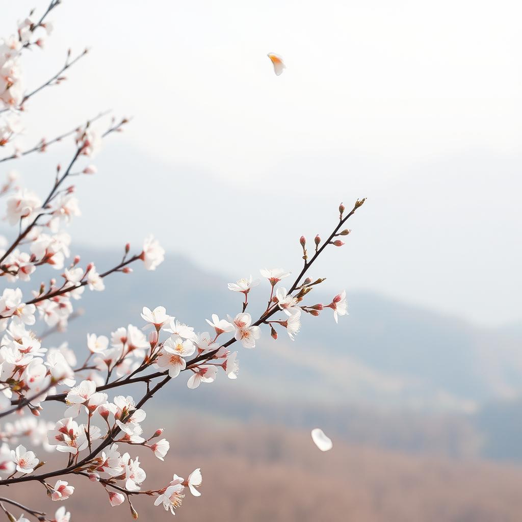 Nustyle ambient chillout IDM, soft four-on-the-floor kick, half-time ambient pads and melody, floating atmospheric pads, piano intro, hypnotic repetition, gradual micro variation, dreamlike atmosphere, spring wind atmosphere, plum blossom feeling, bittersweet hope, A Minor