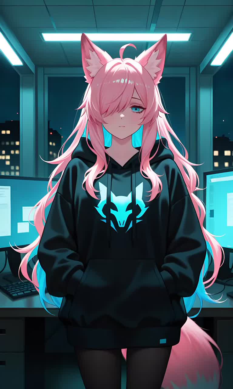 A dark, futuristic hyper pop track with glitchy electronic textures, heavy synth bass, syncopated rhythms, miku voice, vocaloid, a blend of digital chaos and melodic emotion, The arrangement includes dramatic dynamic shifts, distorted sounds, Layers of processed vocals and experimental beats create an otherworldly yet human soundscape, Evokes a cyberpunk city at night, full of internal conflict and beauty