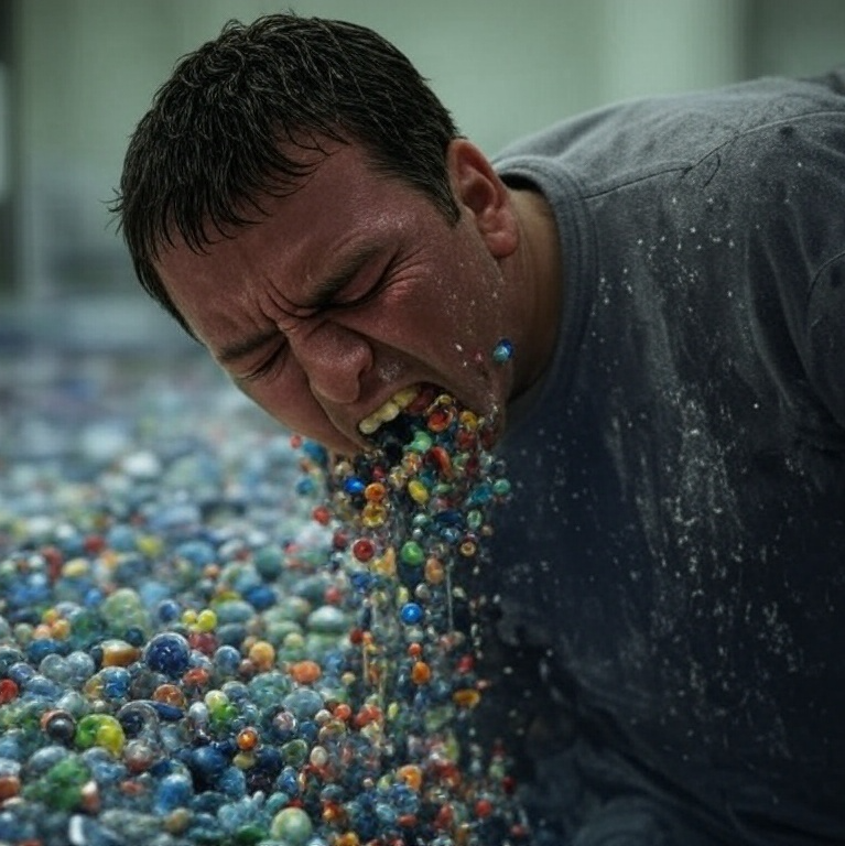 This track erupts in a savage fusion of groove metal, thrash, and metalcore, unleashing a barrage of downtuned guitars churning palm-muted riffs laced with dissonant harmonies and shredding solos in harmonic minor scales, The drums hammer technical double-kicks and polyrhythmic fills, while the bass locks in with thunderous weight, fueling breakdowns with syncopated stabs, Man 1's vocals growl gutturally with a cryptic, halting menace, evoking a shadowy conspirator, contrasting Man 2's piercing screams that build frantic frustration and raw urgency, The intro simmers with tense, spoken-like exchanges over brooding grooves; verses escalate into aggressive back-and-forth riffs mirroring the dialogue's absurdity; choruses explode in anthemic, repetitive howls over crushing breakdowns; and the outro fades into chaotic fury with final screams, all enveloped in relentless, dark energy