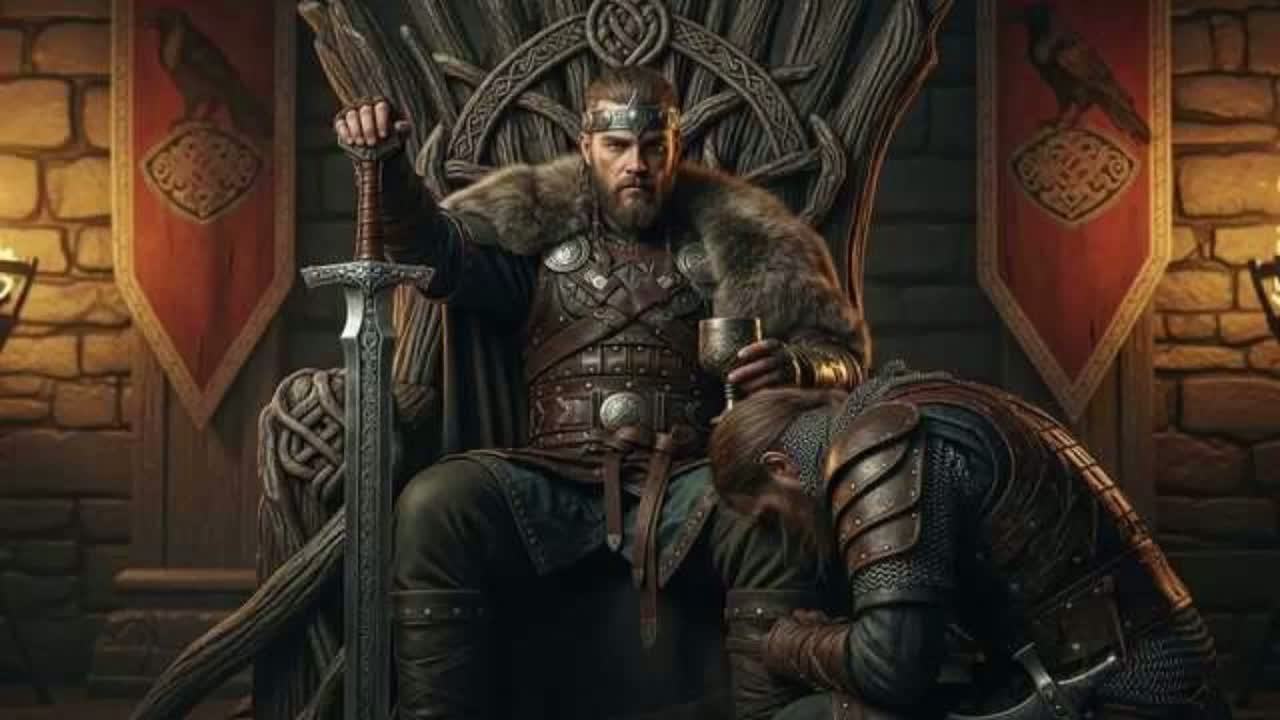 Epic cinematic theme blending Nordic warrior intensity with Versailles-style baroque opulence, Deep, resonant tribal percussion and dramatic drums meet lush strings, harpsichord flourishes, and layered brass, Haunting male and female choral vocals intertwine with ethereal atmospheric pads, creating tension, grandeur, and regal drama, Traditional Nordic instruments (tagelharpa, frame drum, overtone singing) mix with orchestral baroque elements for a unique, cinematic fusion, Dynamic crescendos, elegant melodies, and dramatic harmonic swells evoke battles, courtly intrigue, mythic landscapes, and opulent decadence, Powerful, dark, majestic, and emotionally charged, with slow-building tension and explosive releases
