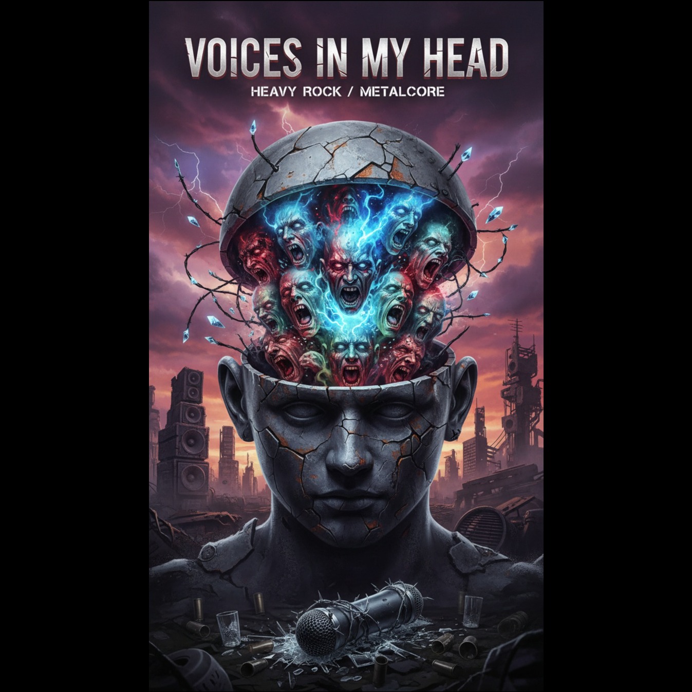 Vocal Style: Male, expressive, intense, emotional; capable of alternating between melodic singing, raw raspy power, and rap-style rhythmic delivery, Full dynamic range — soft tension in introspective lines, explosive energy in choruses, urgent flow in rap-style bridge, Genres: Metalcore + Rap Metal + Cinematic Rock (dramatic, genre-blending, heavy emotional weight)