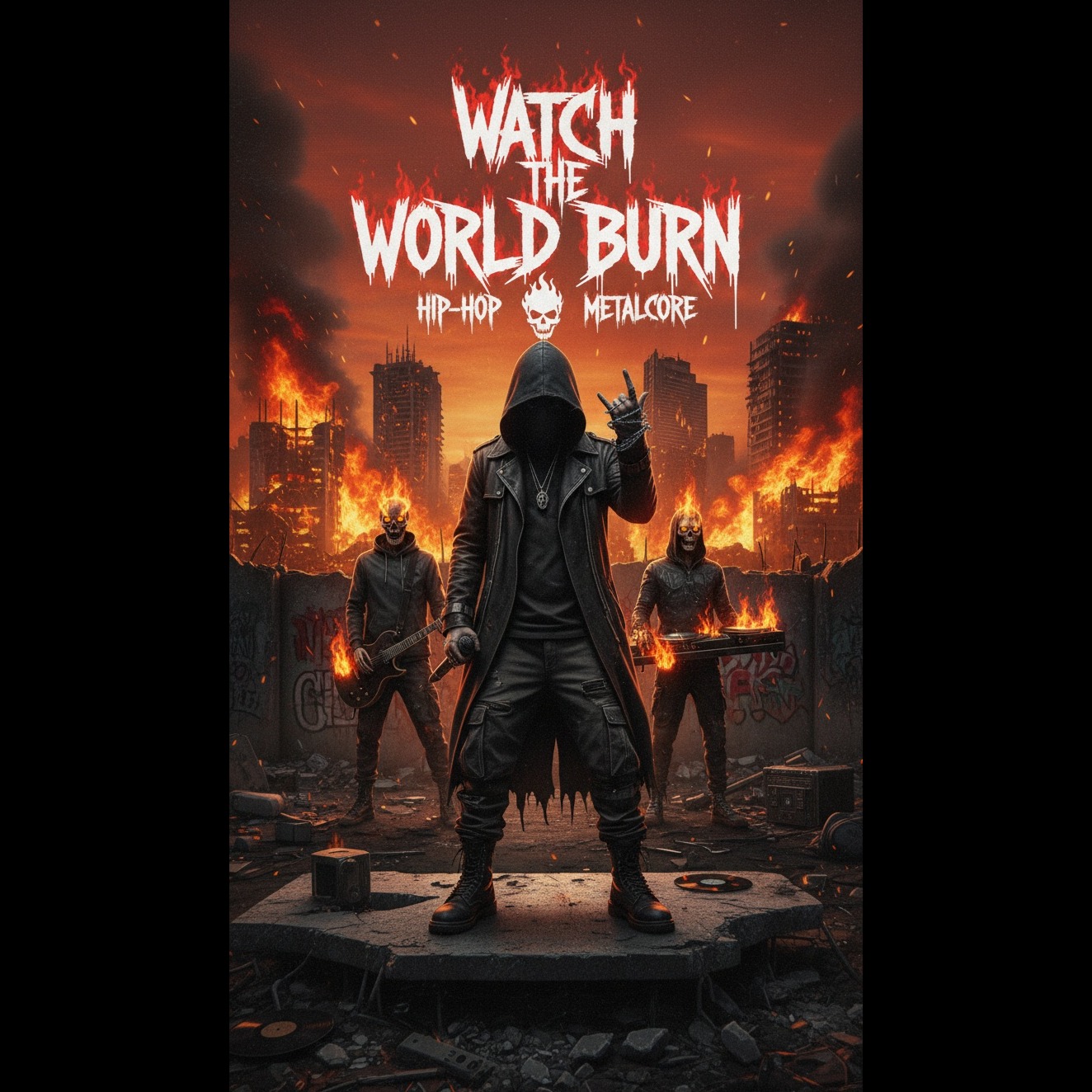 Hip-Hop + Metalcore (modern crossover, aggressive and cinematic)