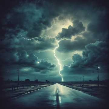 ethereal, a pulsating bassline, and shimmering synth pads, trance, electronic, ambient trance, layered electronic textures with thunder and rainstorm sound effects, ambient