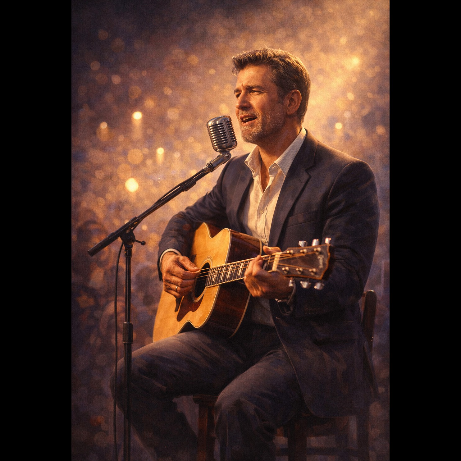 male vocals, vintage analog warmth, Male lead vocal in a deep, rich baritone with expressive southern phrasing and dynamic vibrato, Vocal tone is smooth with raw emotional edges, evoking classic rockabilly and gospel roots, The song alternates between soft romantic ballad verses and upbeat, energetic rock/blues sections, Instrumentation includes upright bass with slap technique, tremolo electric guitar with spring reverb, mellow piano, subtle Hammond organ, brushed snare drums, and light backing vocals in gospel harmony, Occasional studio chatter and voice interjections from the singer, reacting to the band between verses, should be included for realism, Emphasize a live, intimate feel—imperfections welcome, Blend early rock ‘n’ roll, rhythm & blues, and 60s soul, Tempo shifts naturally between slow ballad and mid-tempo shuffle, Overall mood: warm, nostalgic, spontaneous, heartfelt, echo, Dreamy EDM with Rap, HipHop Elements, guitar like the sea meeting the edge of the mountain