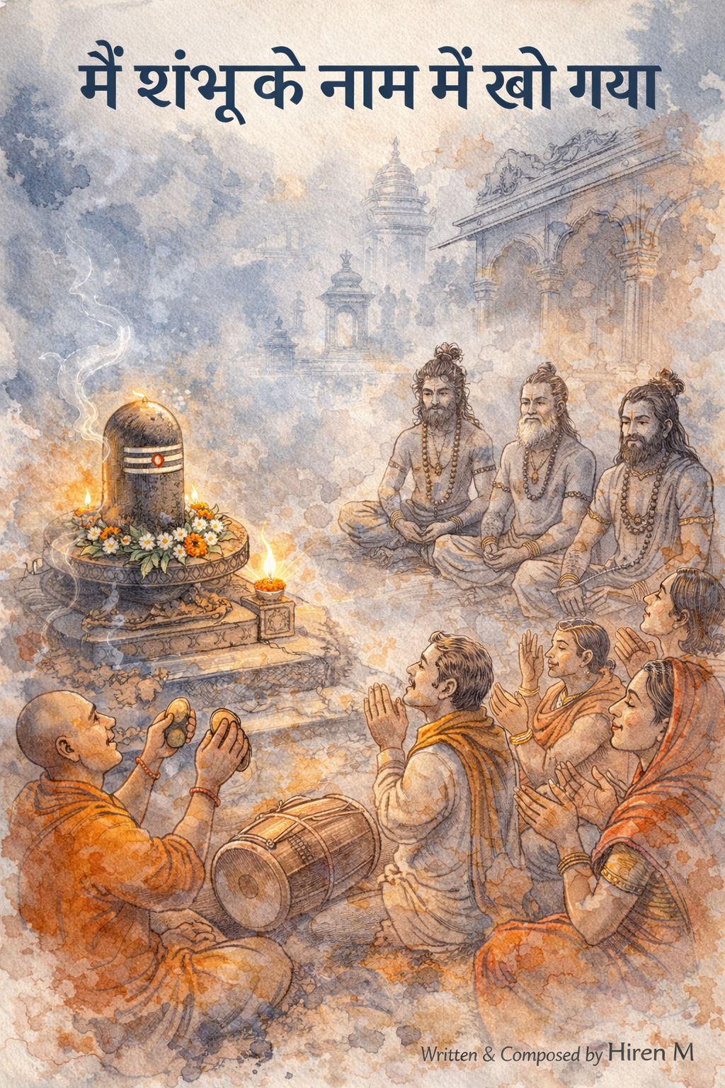 Devotional Hindu bhajan for Lord Shiva, calm and powerful, slow to medium tempo, Deep male vocal with meditative resonance, Indian classical style, Harmonium and tanpura drone, soft tabla and damru, occasional bell sounds, Emotion is peaceful, intense devotion, spiritual depth, Chant-like flow with bhajan structure, suitable for meditation and night listening