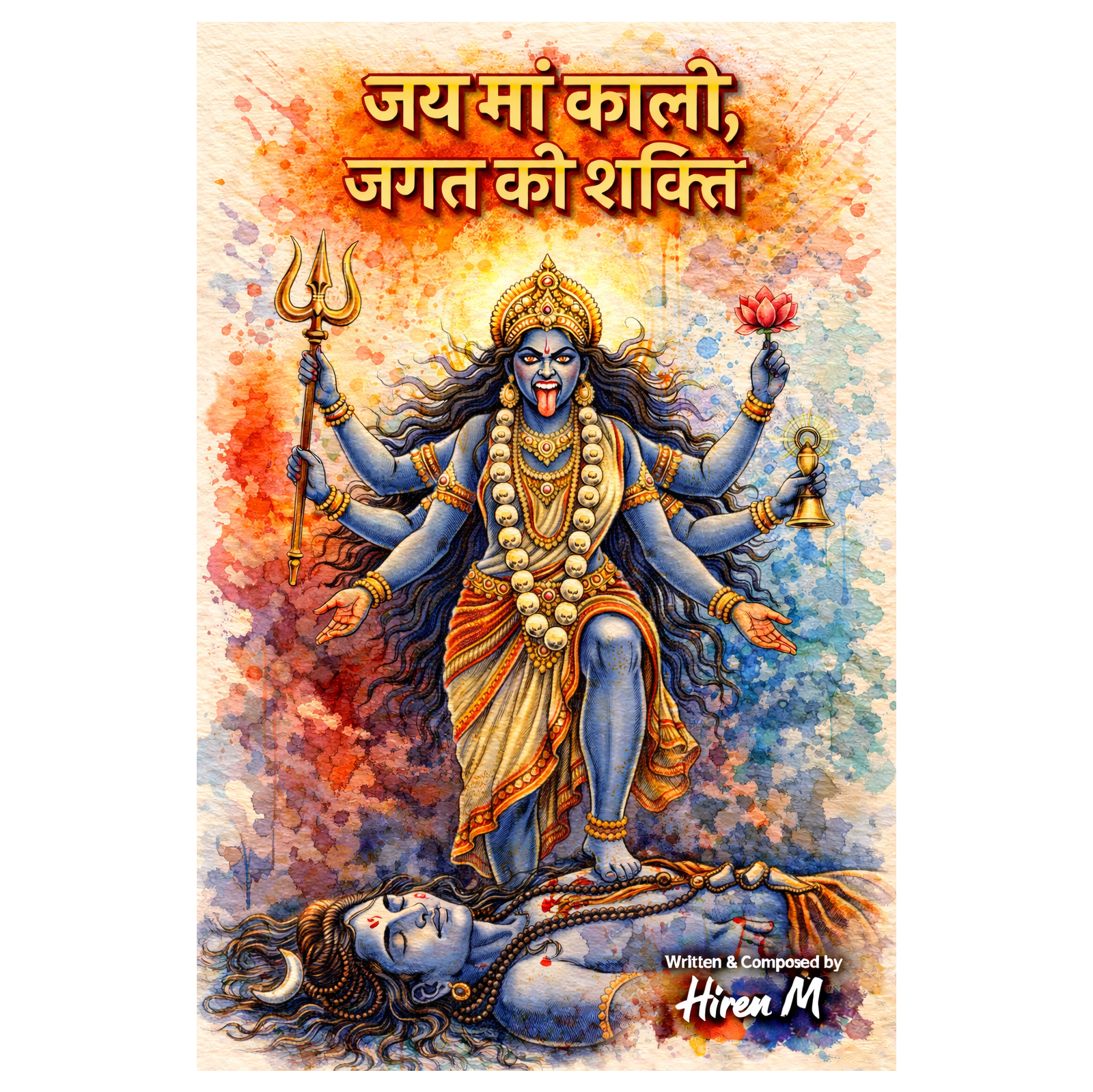 Indian devotional bhajan dedicated to Goddess Kali, ugra shakti bhav, slow to medium tempo with hypnotic rhythm, female vocal, intense and commanding, deep tanpura drone, tribal percussion, minimal melodic movement, ritualistic and transformative atmosphere