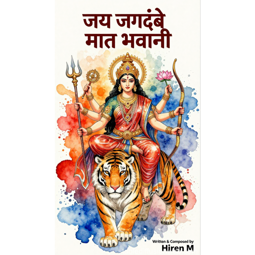 Indian devotional bhajan dedicated to Goddess Durga, shakti and karuna bhav, medium tempo with gradual intensity build, female vocal, strong yet compassionate, tanpura drone with mridang and dholak, occasional conch and temple bells, classical devotional mood, powerful but graceful, festival evening ambience
