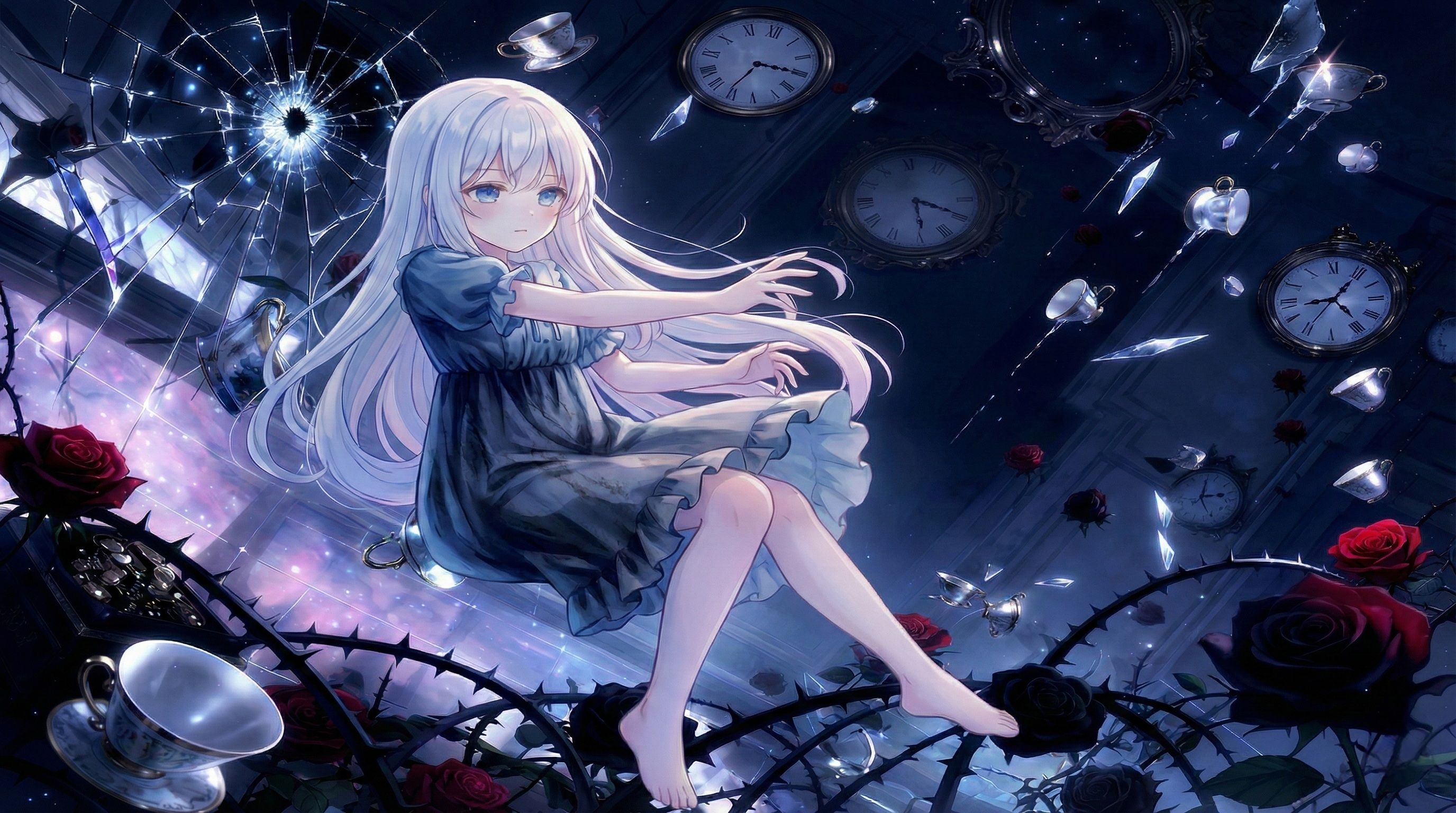 floating, blue atmosphere, Alice-like surrealism