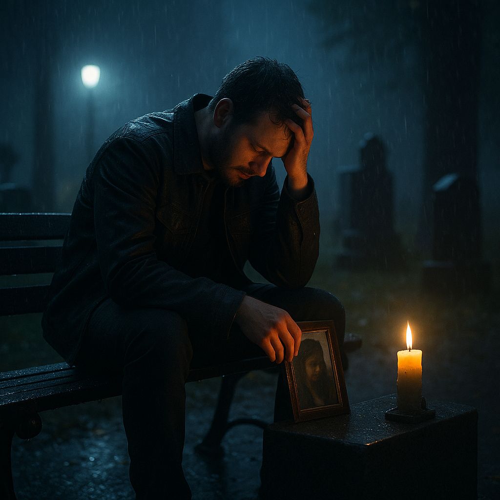 An ambient dark-pop piece in E minor at 68 BPM with a haunted, cinematic atmosphere, Soft synth pads, distant piano echoes, breathing textures, and low sub warmth create a floating nocturnal space, while light symphonic strings and faint choir layers add subtle emotional lift without overpowering the intimacy, The arrangement stays sparse and dreamlike through the verses, gradually deepening with low pulse, drones, and restrained harmonic expansion, The male vocal remains low, close, and breath-led, carrying the story with ghostlike calm rather than dramatic force, Refrains open slightly into a more melodic rise, while the later sections introduce heartbeat-like motion and gentle orchestral tension, The production emphasizes width, reverb depth, soft low-mids, and a fragile cinematic glow, avoiding glossy pop polish in favor of eerie stillness and emotional mystery