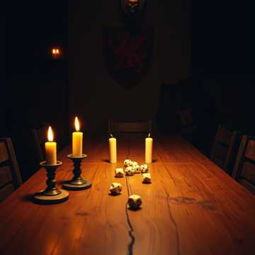 atmosphere medieval tavern firelight clashing mugs warriors singing about fate and a single roll of dice raw organic powerful no modern synths