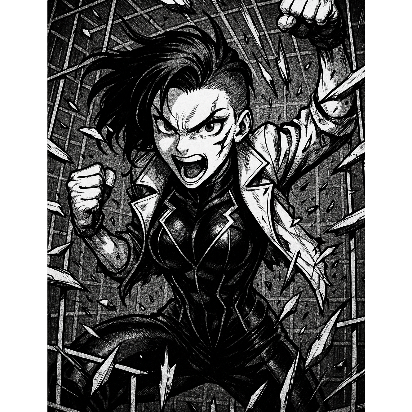 A furious blend of nu metal guitars, glitchy cyberpunk synths, and pounding electro beats, woven around spitfire female rap verses, Gritty basslines drive the verses; the chorus explodes with layered harmonies and distorted effects, Breakdowns feature manipulated vocal chops over industrial textures