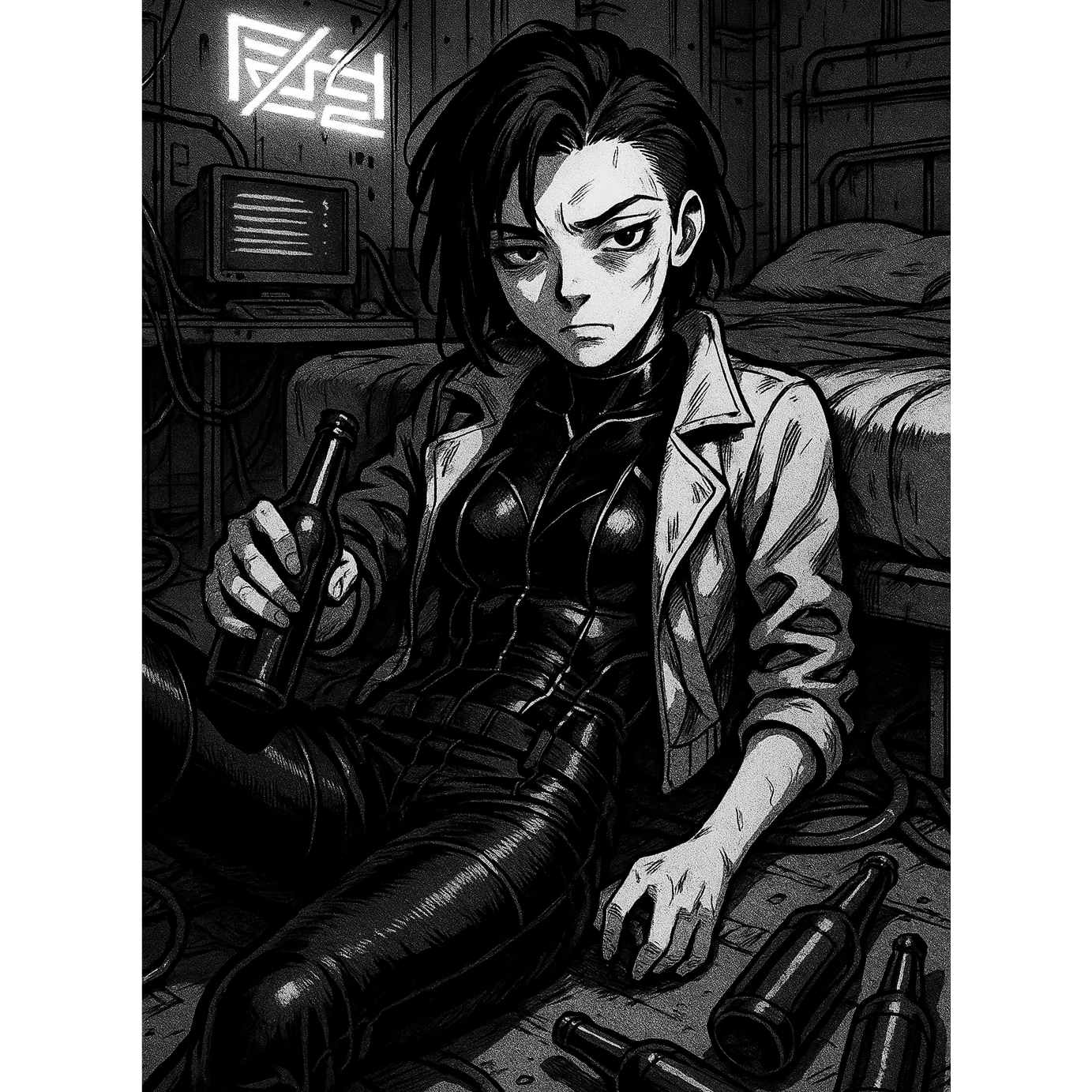 Start right away on the verse, violent rap rhythms, layered with glitchy textures (fx cyberpunk) and deep bass pulses, create a tense, dark atmosphere, Sassy female vocals deliver rap verses at breakneck speed