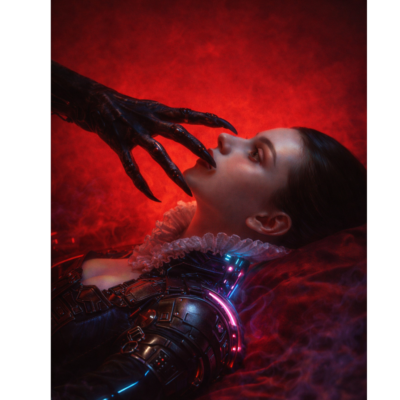 A dark fusion of dark wave, electro rock, New Wave, alternative rock with an oppressive, anxious atmosphere and a sense of latent menace, Built around guitar, bass guitar, trumpet and drums, with cold, rigid guitar ostinato driving a ritual-like, unsettling cyclic motif, The trumpet functions as a distant, mythological signal cutting through the texture like a call from the fog, Synth layers create a claustrophobic, misty soundscape reminiscent of a northern sea, frozen time and autumnal decay, Female vocal, young, soft but tense, within a range of up to three octaves, fragile yet emotionally restrained, sounding like a compulsive incantation rather than expressive singing, Mood: dark, anxious, cold, hypnotic, ominous, No brightness, no pop gloss, no warmth, Focus on tension, repetition, and slow psychological pressure
