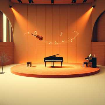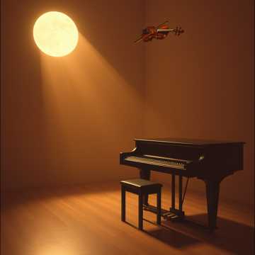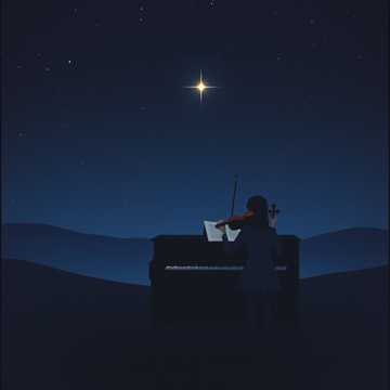 Romantic nocturne-style duet: intimate solo piano and high-register violin, Piano traces soft, arpeggiated harmonies with generous rubato and long breaths of silence; voicing favors warm middle register blooming into gentle treble shimmer, Violin enters like a distant voice, sustained bel canto lines in high positions, supple vibrato and poised portamenti, occasional filigree trills that feel like sighs rather than display, Dynamic arc rises from barely-there tenderness to a single, glowing climax, then gradually dissolves in morendo—texture thinning, phrases fragmenting into near-weightless harmonics and whispered final chords, Airy hall reverb, close yet haloed, capturing bow hair and pedal noise for intimate realism, violin, romantic, harmony, lyrical, deep, dynamics, refined, slow, gradual