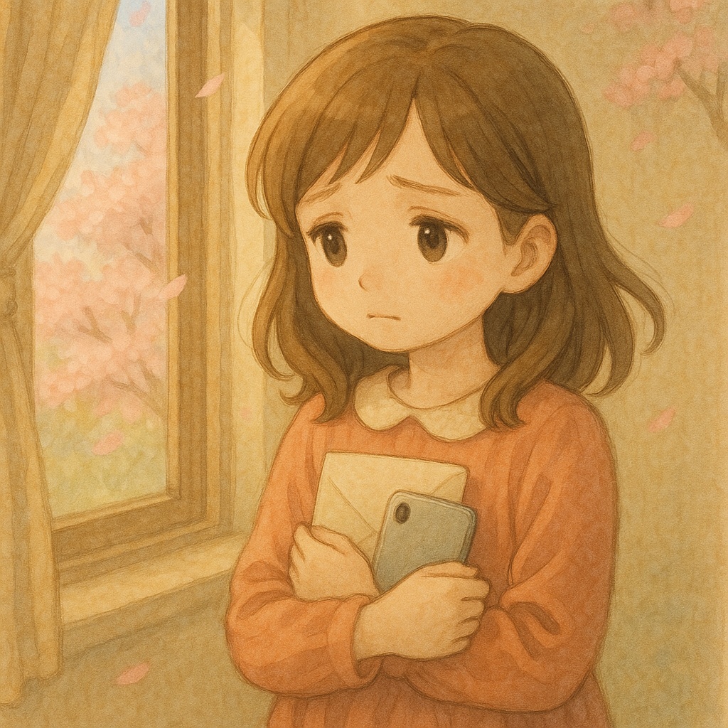 gentle emotional ballad, soft piano and subtle strings, slow tempo (around 70 BPM), Japanese female vocal, cute and heartfelt delivery, sung by a shy but honest girl, delicate and slightly breathy voice, intimate bedroom-style recording, no background noise, no vocal effects, solo vocal, emotional yet restrained, rainy night atmosphere, inspired by quiet confessions, like a whispered letter across the sea, cinematic and minimal