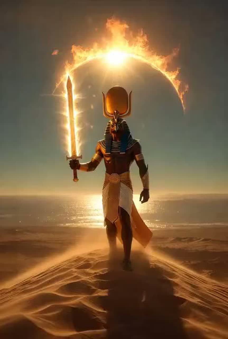 Epic Symphonic Metal Track With Powerful Tenor Lead Vocals And Male Choir, Style: Majestic, Heroic, Aggressive, Instrumentation: Full Orchestral Brass (French Horns, Trombones), Timpani, Electric Guitars (Drop C), Fast Metal Drums, Symphonic Strings, Synth Choir Pads, Structure: Shouted Intro → Verse With Rhythmic Riff + Tenor Lead → Anthemic Chorus With Orchestral Swell → Egyptian Chant Bridge Over Guitar Breakdown → Verse 2 With Tighter Riffs → Final Chorus With Soaring High Notes → Shouted Outro With Choir Hits, Tempo ~112–116 BPM, Key: D Minor, Language: English With Ancient Egyptian Fragments, Clip Volume: Lead +8, Choir +2, Guitars +3, Brass +2, Drums +3, Strings 0, FX +1, Master -1
