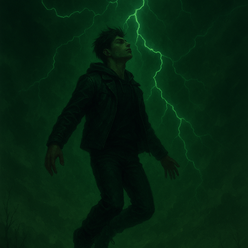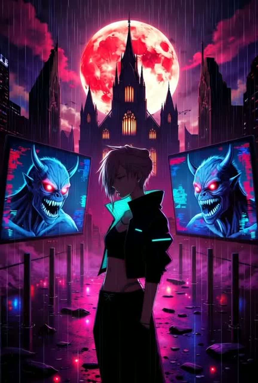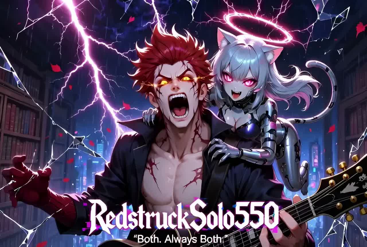 A collision of Cybercore aggression, dense AI Glitchwave layers, and Eletro Djent’s contorted guitar figures meets prog-fusion synthwave textures, Subsonic bass drones form the backbone, laced with hyperactive German electronica beats, Verses feature a deep male voice, contrasted by a soaring female lead in the melodic, synth-heavy choruses, The bridge spirals into intricate synth and guitar interplay, all riding atop restless, chaotic rhythms for intense futuristic energy