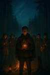 Campfire rebel folk anthem with raw, organic outdoor energy, Acoustic guitars as the main driving force, warm and slightly rough male lead vocal, supported by a unison scout-style choir, Strong rhythmic foundation with stomps, claps, finger snaps, and occasional whistling motifs, Mood: rebellious yet hopeful, rustic, unifying, like a group of scouts singing around a bonfire at night, Harmony simple but powerful, with emotional build-ups, Call-and-response phrases, earthy textures, natural reverb as if recorded outdoors, Folk percussion using hands, boots, wood hits, Melodies uplifting but with a rugged edge, Bridge becomes intimate with soft humming and whistling, then grows back into a loud, stomping, hand-clapping final chorus, Overall vibe: unity, resilience, courage, tradition-meets-rebellion; an anthem for wanderers, dreamers, and those who carry the fire forward
