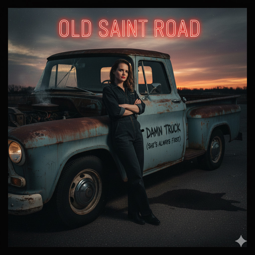 Rootsy, swinging alt-country rock song with a swampy Americana groove & a raw, live-band feel, The arrangement should feature twangy electric guitar virtuoso riffs, steady drum shuffle, warm bass, & touches of organ, Keep it rocking, minimal, & slightly overdriven—like a smoky roadside bar performance, Female vocal should be a soulful, confident female lead with a husky, emotional edge & natural southern phrasing—equal parts attitude, wit, & heart, She sounds like she’s lived the story she’s telling, with conversational phrasing and a sly grin in her delivery, The tone is earthy and unpolished but deeply musical, with dynamic phrasing & a touch of playful drawl, Background vocals should be subtle & harmonically warm, keeping the spotlight on the storytelling, The overall mood: flirty, bold, & mischievous, blending blues-country rock grit with singer-songwriter intimacy, Lots of hooks, melodic, catchy, memorable