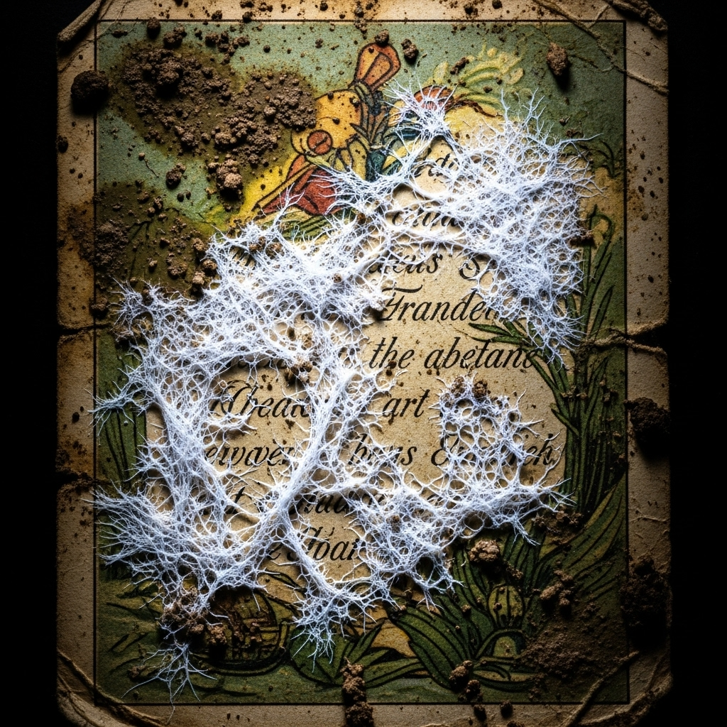 Hauntology Folk, slowcore with a driving industrial dance-punk rhythm section, Sounds like it was recorded in a damp, abandoned library and mastered to a decaying reel-to-reel tape, Features intricate and melancholic acoustic guitar, a hypnotic, repetitive post-punk bassline, and cold, glitchy electronic percussion, The atmosphere is granular and decaying, full of tape hiss, vinyl crackle, and subtle digital artifacts, A noisy, atonal guitar solo erupts mid-song, Primary vocalist [Ash] has a delicate, brittle, and whisper-crackle delivery, often lapsing into a shaky, unsteady glottal fry, [Ash vocals: breathy, delicate, shaky, unsteady, glottal fry, whisper-crackle, cracked], Mood is unsettling, intimate, claustrophobic, and quietly ecstatic, Key of C minor, 125 bpm, ‑humming intro, ‑hum, ‑vocalise, ‑humming, ‑intro