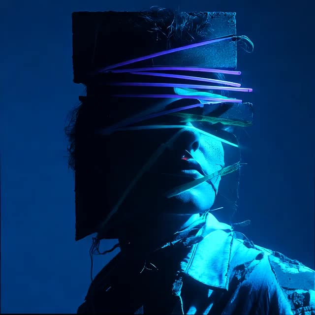 A psychedelic electronic rock track pulsing at 125 BPM; intricate synth layers intertwine, anchored by a distorted bassline and punchy drums, Trance-inspired grooves meet experimental sound design, with morphing digital textures, Pitch-shifted, filtered vocals cut through hypnotic build-ups, glitchy transitions, and a dense, otherworldly soundscape, Male singer