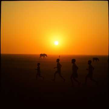 Hybrid roots-fusion at 132 BPM, radiant and uplifting with Goa-inspired energy, A soft chorale opens beneath rolling drums, echoing like sunrise over open plains, After four bars the rhythm awakens — deep bass heavy and round, one-drop pulse merging with forward motion, Congas, bongos and tambourine build layers of life; bright guitar chops and Hammond organ bubble under airy Goa-style arps that shimmer like heat in the distance, Horns blaze anthem-like lines, lifting the groove skyward, A deep male lead begins the verse, voice rich with hope; the female choir answers, harmonies glowing like light through dust, Midway, a fiery rap/toast verse sparks movement and youth power, The bridge blossoms into chants — “The children strong!” — echoed by drums and choir as Goa textures swirl upward, Final chorus bursts into full-band unity — horns, voices, bass and percussion glowing in radiant harmony, A sunrise of rhythm and resilience — unmistakably Alan-B-K