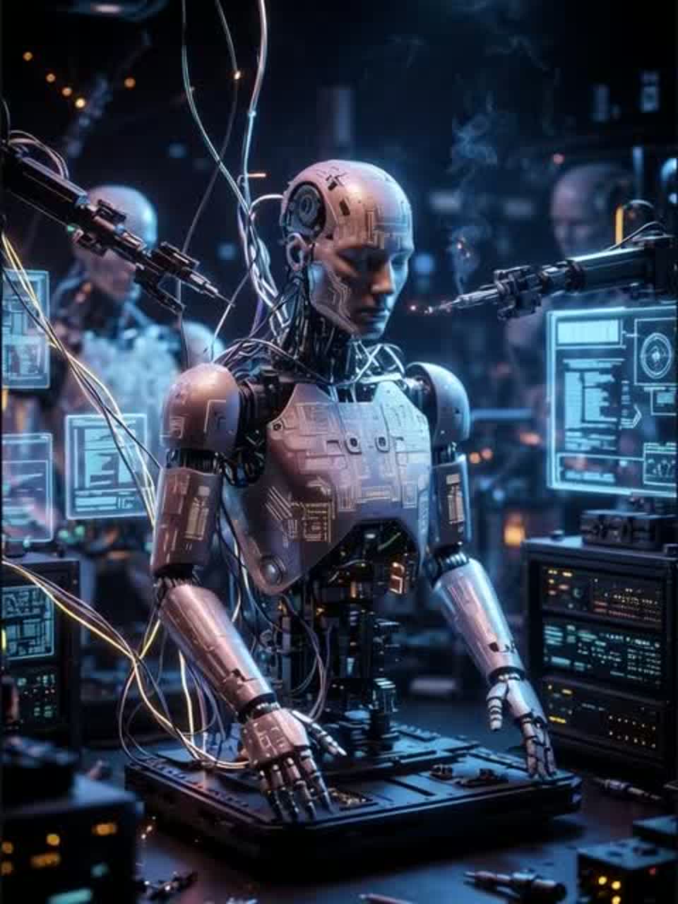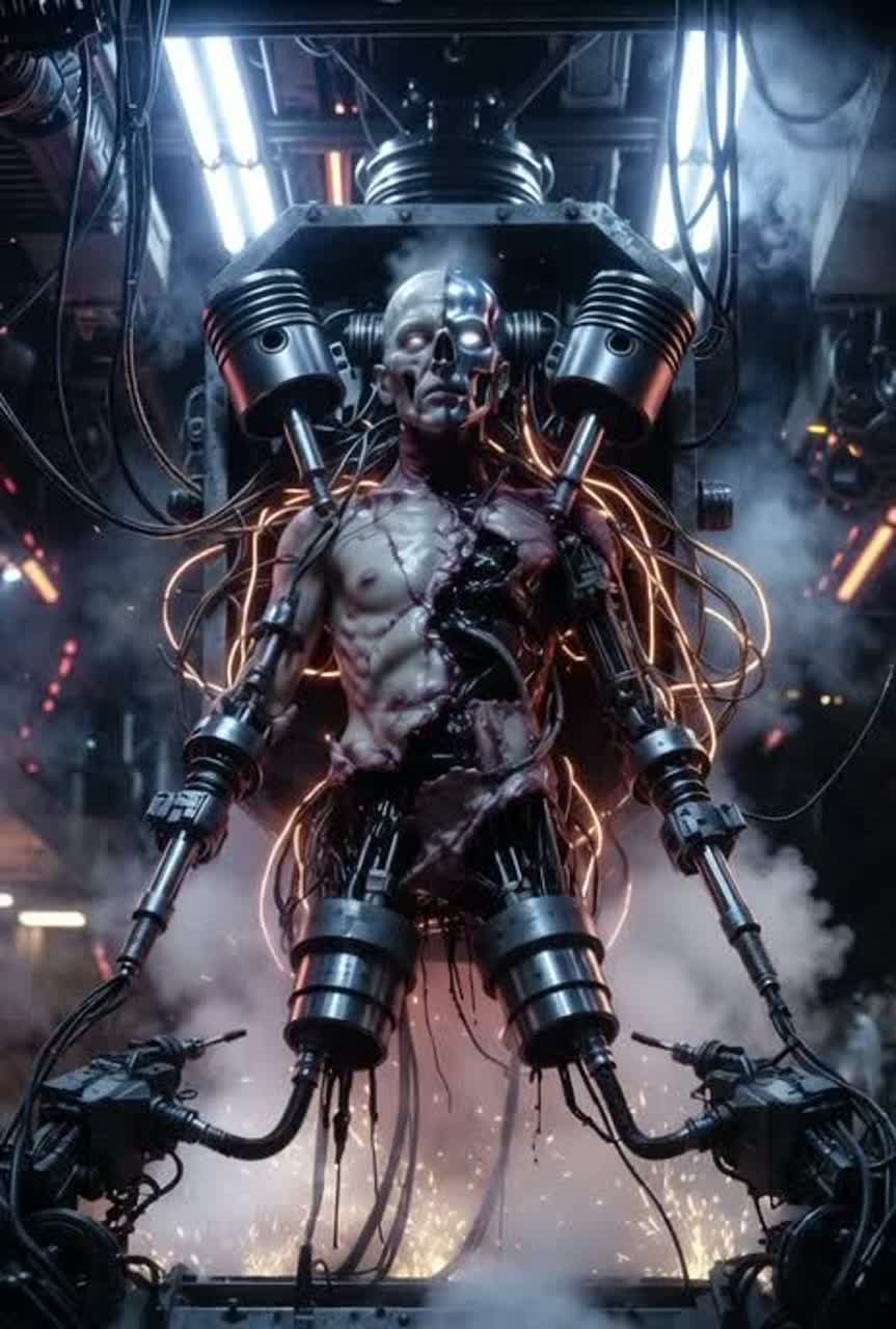 A dark, futuristic neurofunk track with a cinematic atmosphere, No singing voice, only a deep distorted processed male voice using the provided deep distorted processed male voice lines sporadically throughout the track, Use rolling, complex neurofunk breakbeats, Add deep, hard basslines with modern digital modulation, Layer atmospheric pads, eerie cinematic stabs, Keep it fast and aggressive around 174 BPM with heavy drops, razor-sharp transitions, and intricate rhythmic movement, Polished, immersive, and focused on cutting-edge neurofunk sound design