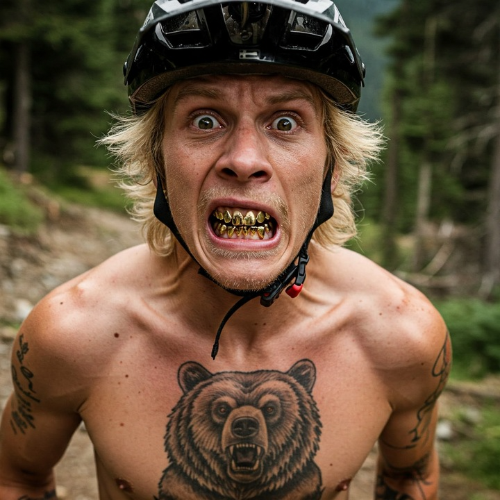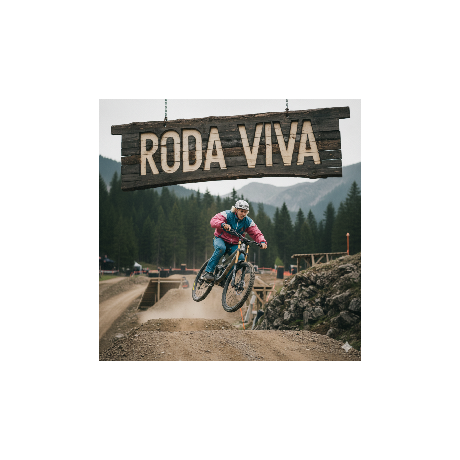 "High-energy acoustic instrumental in the style of Tamacun, with strong Latin percussive guitar, fast rhythmic strumming, warm tropical percussion, Portuguese male vocals inspired by Saúde, Theme: downhill mountain bike racers traveling across the world, Include voice FX like 'Whip!', 'One foot!', 'Scrub!', 'Wheelie!' throughout the track, Uplifting, intense and adventurous, "