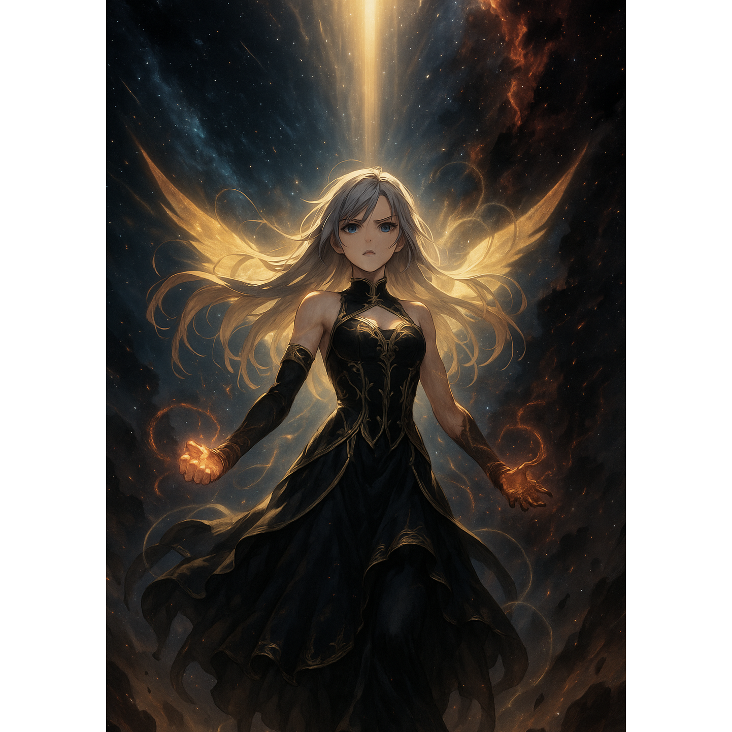 Create an epic dark gothic rock song featuring a powerful female vocal, The main style is emotional and haunting with gothic piano, atmospheric ambient layers, and orchestral strings, The chorus explodes into a heavier, energetic rock section with distorted guitars and dynamic drums, adding a dramatic intensity, Subtle ambient elements inspired by epic anime battles (like glowing energy, spiritual tension) are woven throughout, The lyrics should reflect a spiritual battle: when one casts an intention to change reality, the universe resists — yet the key is to trust oneself and keep going, The song builds to a climactic resolution, embodying defiance, faith, and transcendence, No artist names
