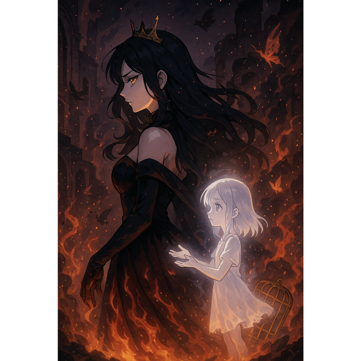 An emotionally intense, mid-to-fast tempo female vocal track blending dark cinematic pop with energetic electronic beats, The song tells the story of a powerful woman confronting her former self—a ruthless empress who once found pleasure in domination and cruelty, Through poetic lyrics and dynamic rhythm, she guides her inner shadow toward peace, embracing it as part of her luminous path, The tone is fierce, graceful, and mysterious, with rich textures, symbolic metaphors, and sharp transitions, Include layered vocals, pulsing bass, and strings that shimmer like silk, Her shadow still watches—calm, loyal, and dangerous, Title: "Ashes and Silk"