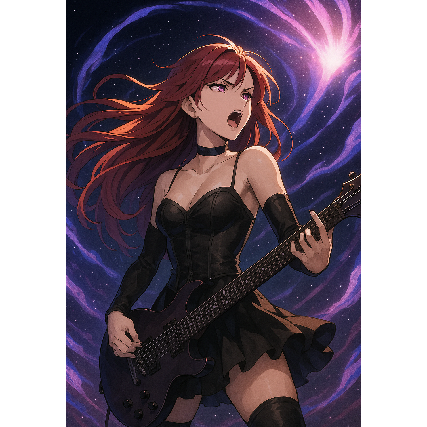 Epic cinematic female-fronted rock track with a powerful and sensual atmosphere, Combine dark, atmospheric symphonic rock with heavy distorted guitars, dramatic orchestral strings, and deep cinematic percussion, Add energetic punk-rock inspired drumming with fast hi-hat and snare fills for drive and urgency, The vocal is strong, emotional, and seductive, shifting from whispery, intimate verses to soaring, explosive choruses, Include layered harmonies in the chorus for a grand, anthemic feel, Introduce an epic cinematic intro with ominous synth pads and deep tom rolls, and a slower, intense bridge with reverb-heavy guitars before returning to a powerful double-time final chorus, Tone should blend the sensual mystery of gothic rock with the raw energy of punk-rock edge, and the massive scope of anime battle themes