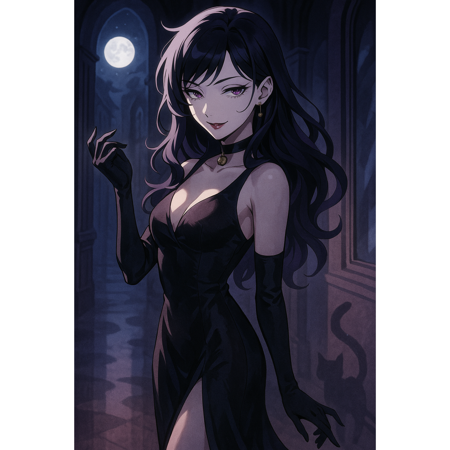 A sultry, mysterious, and intoxicating theme song for an enigmatic, Cheshire-cat-like femme fatale with sharp intellect and playful danger, Mid-tempo (BPM 100), smoky lounge-meets-trip-hop atmosphere with jazzy minor 7th chords, smooth walking bass, and subtle swing, Whispery, teasing female vocals with moments of sly laughter and unexpected pauses, Sensual electric piano, warm analog synth pads, and reversed sound effects for surreal charm, Lyrics weave metaphors of cats, mirrors, perfume, shadows, and labyrinths, blurring whether she is inviting you in or leading you astray, The overall vibe is elegant, seductive, and impossible to pin down
