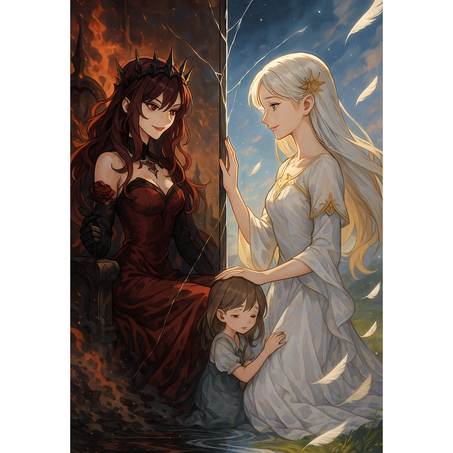 A cinematic gothic rock/metal song with a powerful and emotional female lead vocal, The song explores the journey of embracing and integrating both light and shadow within oneself, It starts with soft piano and atmospheric strings, builds with haunting whispers and emotional tension, then erupts into heavy guitars, deep orchestration, and an epic chorus, The vocal progression moves from delicate and vulnerable to fierce and triumphant, Lyrics reflect themes of shadow work, emotional healing, self-forgiveness, and spiritual rebirth, The overall mood is dark, dramatic, empowering, and transformative, No artist references — focus on high emotional intensity and theatrical sound design