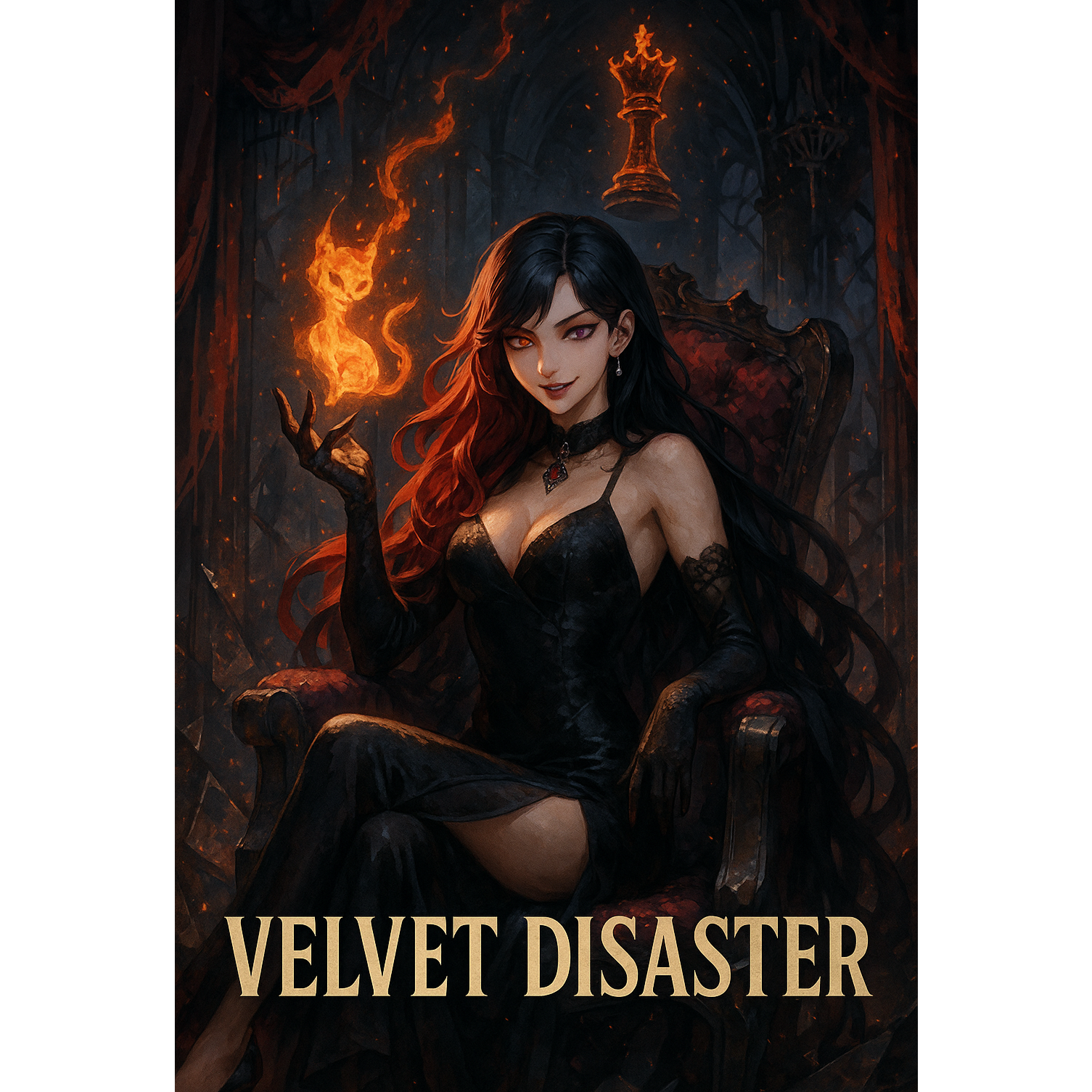 Create a dark EDM track with a seductive, dangerous vibe, Female vocals should be whispered and intimate in the verses, then powerful and emotional in the chorus—like a villainess revealing both fury and fragility, Use pulsing sub-bass, haunting synths, cinematic risers, and distorted vocal chops, The beat should feel like a heartbeat in fire, with glitch textures, metallic drums, and occasional reverse effects, Imagine a black velvet ballroom in flames—sensual, mystical, and fierce, Tempo around 126 BPM, Blend dark pop, trap, and industrial elements with a hypnotic rhythm, evoking themes of power, revenge, and hidden pain