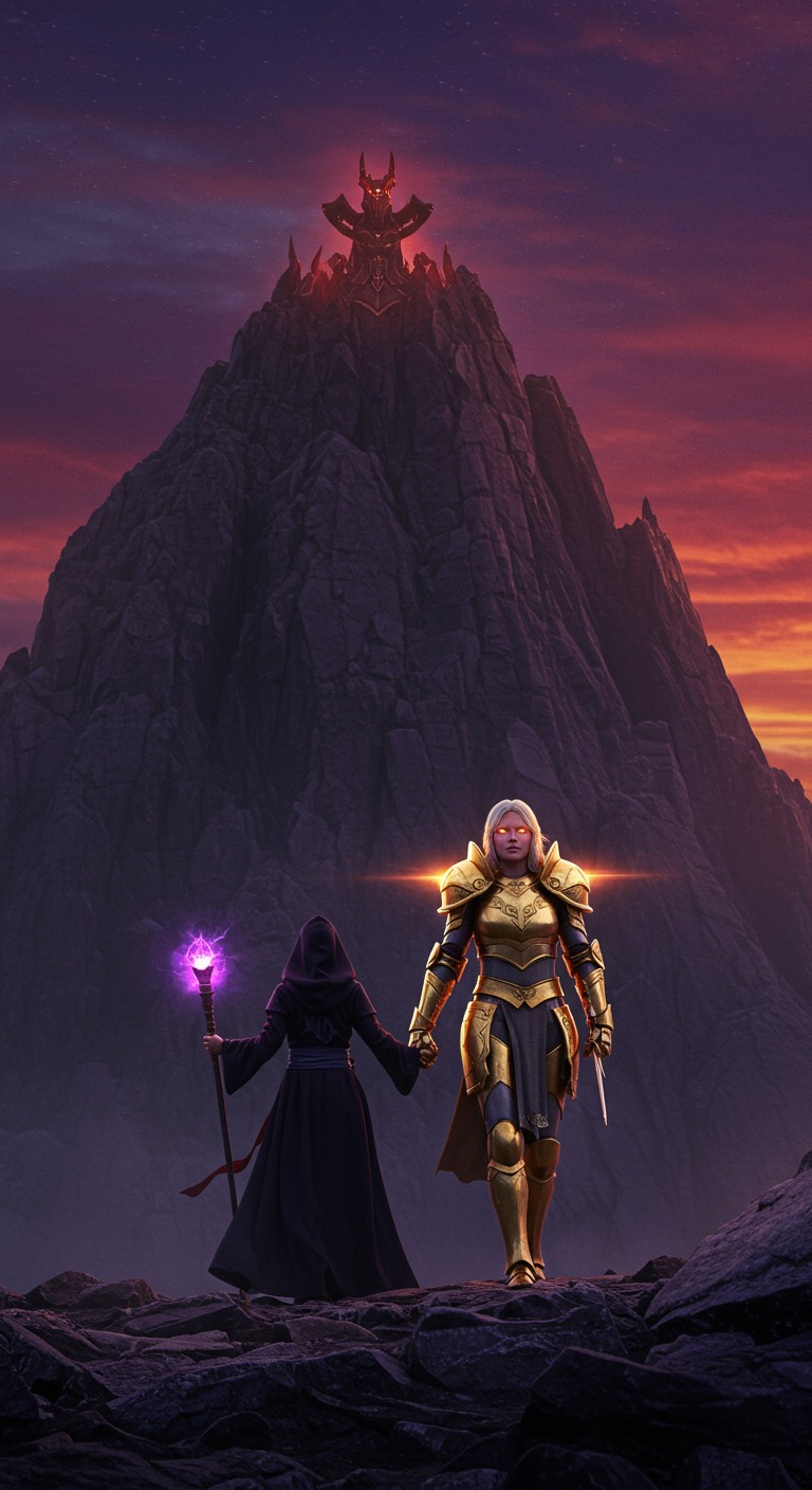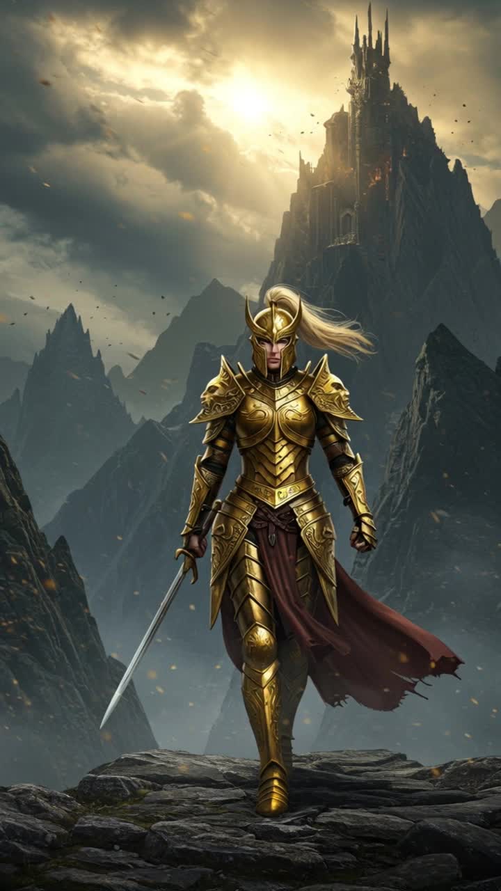 Gothic Fantasy metal, Introspective female vocals, leading into powerful distorted guitars and soaring choirs, twin lead guitars, and a spoken word intro, Starts with ambient clean guitar and builds into powerful distorted guitar riffs and strong double kick drums, Includes a dramatic guitar solo and cinematic orchestral backing, Emotional and intense tone, evoking courage and transformation