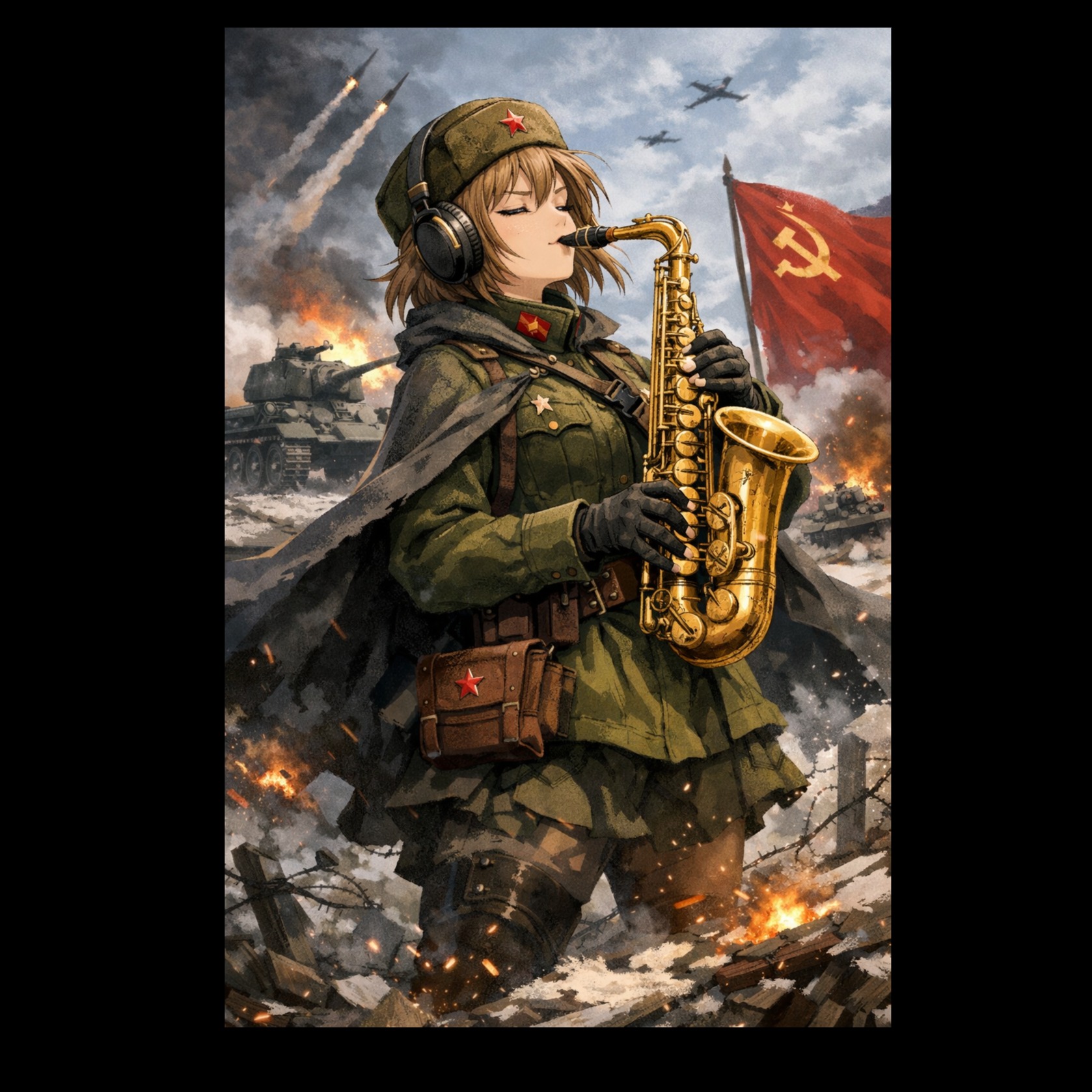 An energetic EDM festival track inspired by a massive European electronic music event, blending Russian folk melody Katyusha with modern electronic dance music, Begins with a cinematic intro (cold wind, soft accordion, female vocal), then builds into a powerful festival beat with kicks, claps, and rising synths, Features a dominant saxophone lead playing a remix of Katyusha melody during explosive drops, Includes crowd hype chants, strong bass, euphoric energy, and live party atmosphere, 130 BPM, mainstage festival vibe, epic, emotional, and powerful