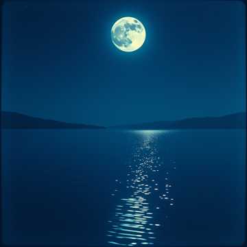 Night lake ASMR, still water reflections, faint piano melody, soft night hum