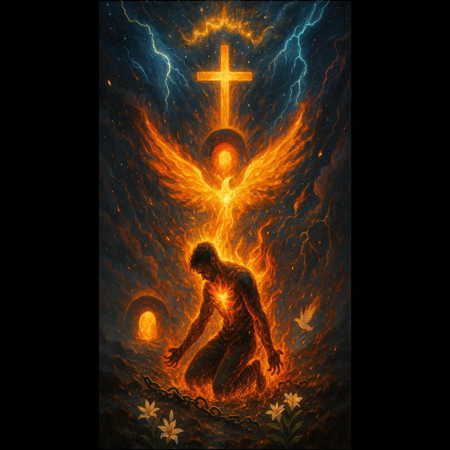 Hyperpop, Trap Beat, Layered Vocals, Glitchy FX, Hard-Hitting Kick, Spiritual Warfare, Rising from Ashes, Jesus’ Name Power, Aggressive Flow, Emotional, High Energy, Fast Rhyme, Dramatic Chorus, Triumphant