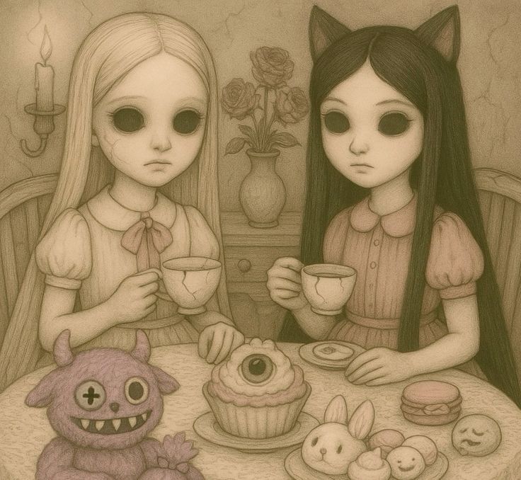 Opens with playful, eerie piano riffs paired with bubbling filtered vocal chops and ominous pads, Dark dubstep drums and jumpscare percussion drive the verses with livewire glitchcore synths and wonky, distorted textures, Pre-chorus bursts into future bass swells, kawaii melodic blips, horrorcore music box plinks, and psychotic synth stabs over sassy alt-pop vocals, Chorus fuses hard house bass, intense trap-inspired drops, melodic EDM hooks, and sweet yet psychotic female ad-libs for an explosive, viral alt-pop cclimax, sad