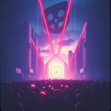 Chaotic electro pop, post garage rock revival, dark wawe track, experimental and maximalist, Aggressive analog synths, distorted bass, glitchy drums, sudden tempo changes, Epic stadium-scale energy, dark futuristic atmosphere, Raw emotional vocals, slightly detached and melancholic, layered harmonies, Unpredictable structure, controlled chaos, tension building into explosive sections