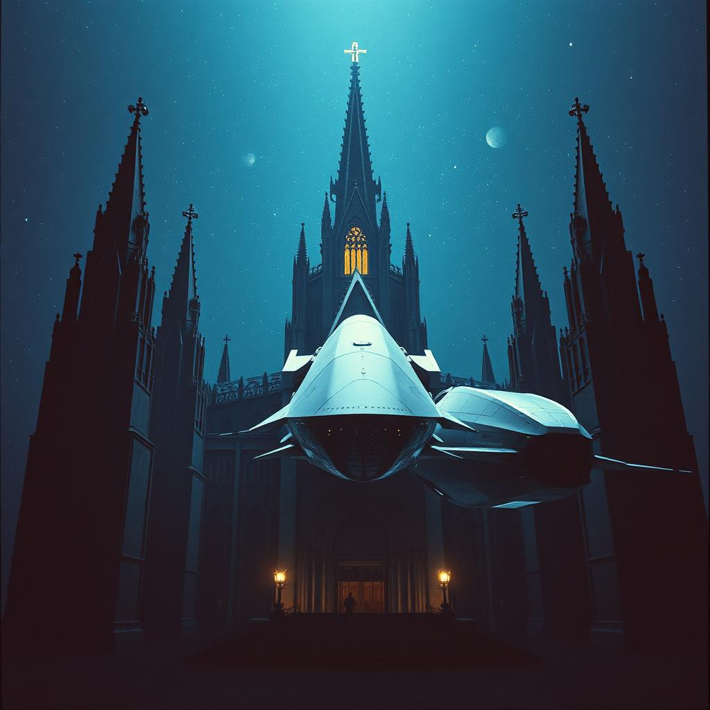 Long-form industrial hymn for protection against the Warp, Tempo 60 BPM, Time Signature 4/4, Key of F Dorian, Continuous low sine wave pulse at sub-bass frequencies represents ship engine resonance, Layer deep pipe organ chords and choral harmonics above the drone; introduce metallic textures, bowed steel, and low brass for atmosphere, Choir should be mixed like distant human voices carried through machinery—slow, solemn, and layered in octaves, Gradually evolve density and intensity, maintaining a sense of mechanical stillness beneath ritual motion, Mix emphasizes vast spatial reverb, low-end clarity, and dynamic range over time, Length target: 3–4 minutes total generation time